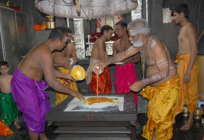 As part of this Seva, Rudrabhishekam will be performed on any one Monday of your choice during the Shravan Maas Mahotsava at the holy Samadhi of Shri Prabhu Maharaj, amidst the powerful chanting of Shri Rudram. The Seva will be offered on your behalf, invoking blessings for your material well-being and spiritual advancement.